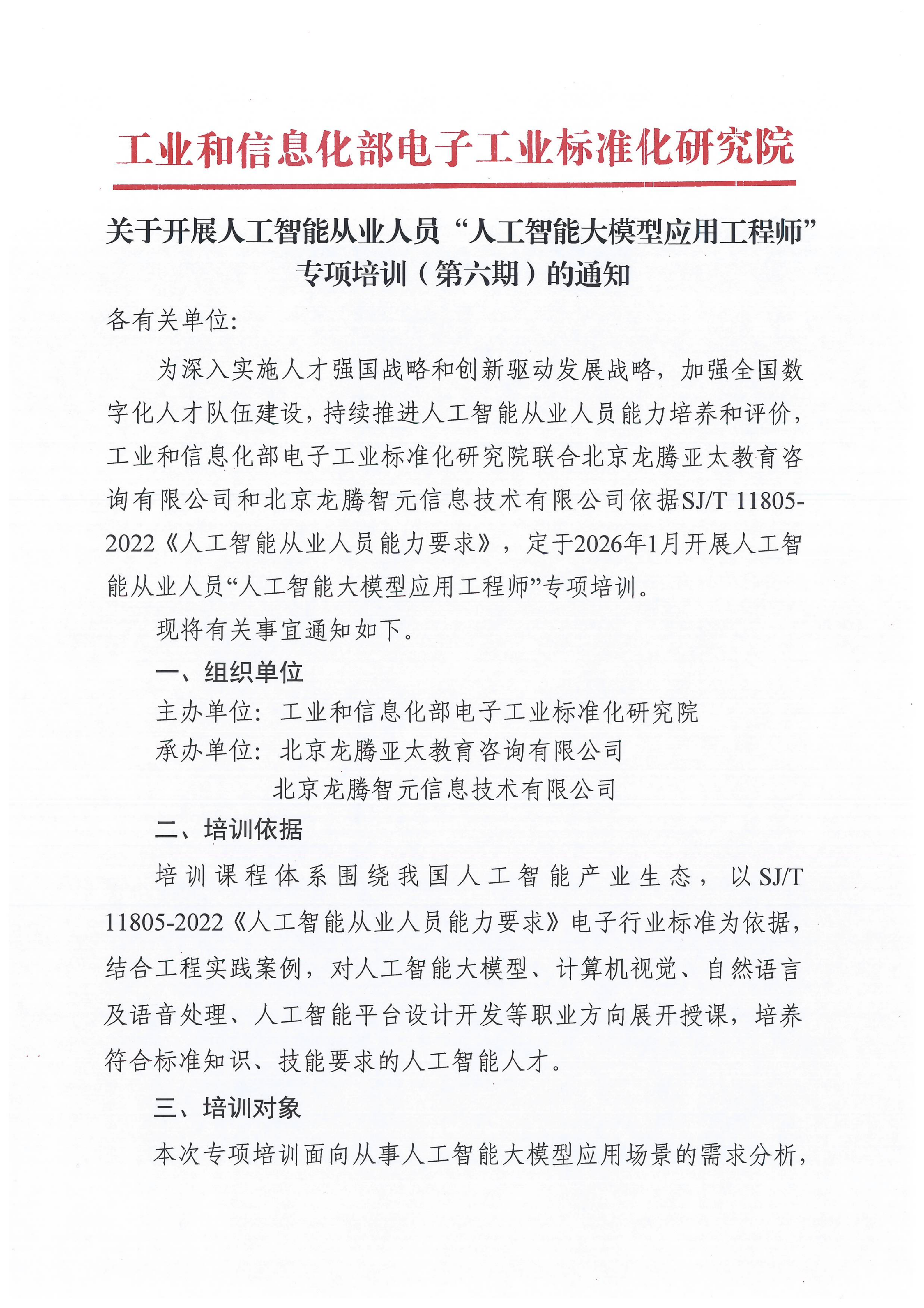 “人工智能大模型应用工程师”专项培训(第六期)的通知 人工智能大模型应用